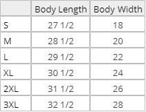 | Size | S, M, L, XL, 2XL, 3XL |